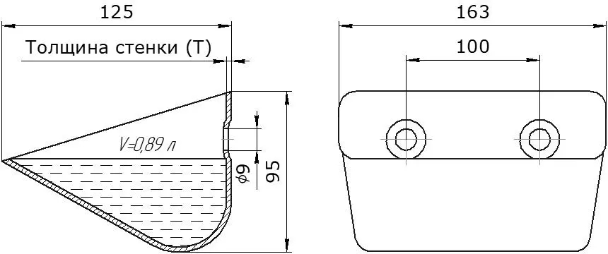 Цельнотянутая конструкция. Отсутствие сварных швов в основной части ковша исключает потенциальные точки напряжения и протечки, повышая надежность и герметичность.