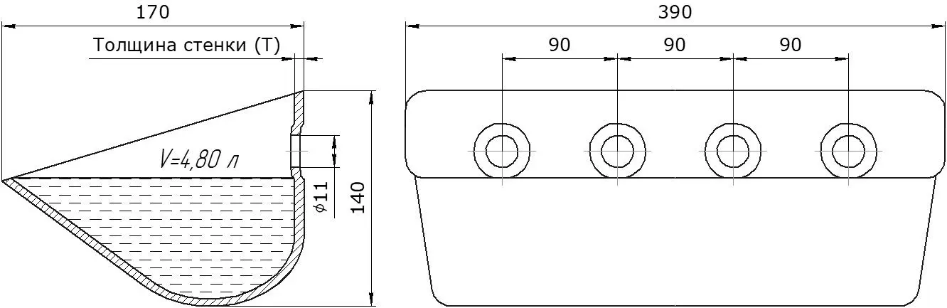 Цельнотянутая конструкция. Отсутствие сварных швов в основной части ковша исключает потенциальные точки напряжения и протечки, повышая надежность и герметичность.