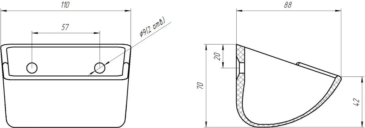 | Межцентровое расстояние между отверстиями, мм | 57 |