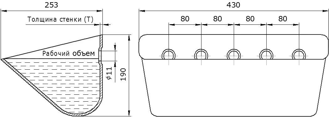 Из черной, оцинкованной или нержавеющей стали. Размеры: 430x253x190 мм