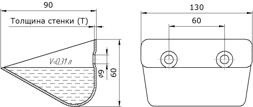 Цельнотянутая конструкция. Отсутствие сварных швов в основной части ковша исключает потенциальные точки напряжения и протечки, повышая надежность и герметичность.