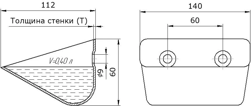 Цельнотянутая конструкция. Отсутствие сварных швов в основной части ковша исключает потенциальные точки напряжения и протечки, повышая надежность и герметичность.