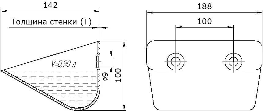 Цельнотянутая конструкция. Отсутствие сварных швов в основной части ковша исключает потенциальные точки напряжения и протечки, повышая надежность и герметичность.