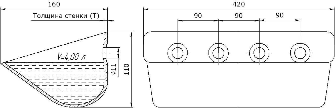Цельнотянутая конструкция. Отсутствие сварных швов в основной части ковша исключает потенциальные точки напряжения и протечки, повышая надежность и герметичность.