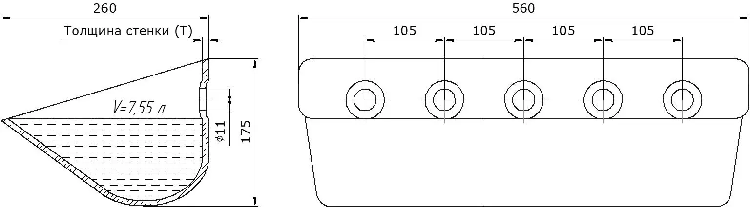 Цельнотянутая конструкция. Отсутствие сварных швов в основной части ковша исключает потенциальные точки напряжения и протечки, повышая надежность и герметичность.