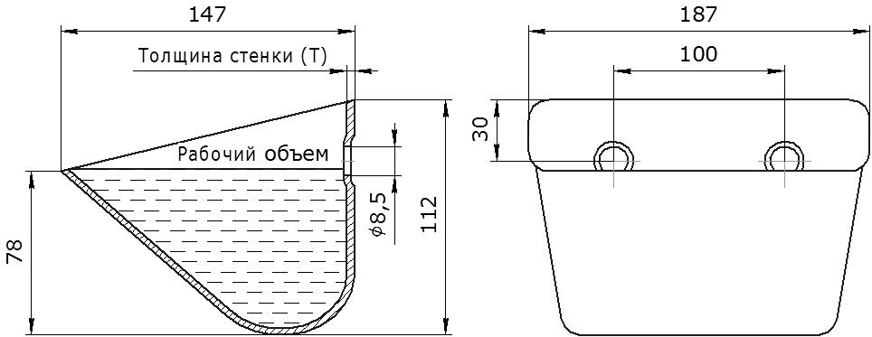 Из черной, оцинкованной или нержавеющей стали. Размеры: 187х147х112 мм