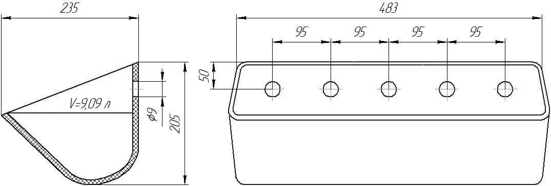 | Межцентровое расстояние между отверстиями, мм | 95 |